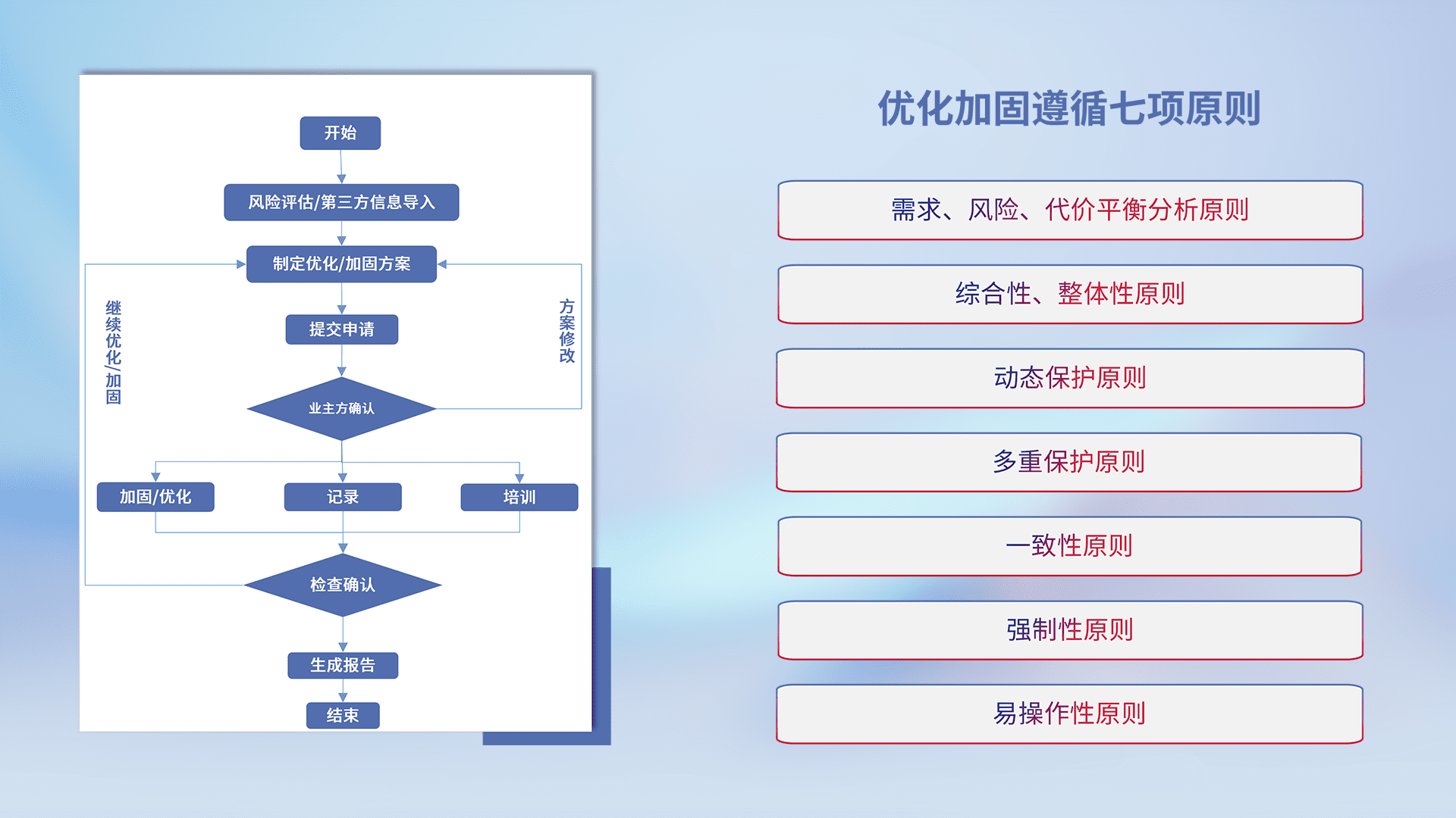 最大程度利用现有资产,,,,对评估发现的问题进行封堵与整改,,,,防止漏洞被利用,,,,提升整体网络安全性,,,为客户带来高标准的优化加固服务。。